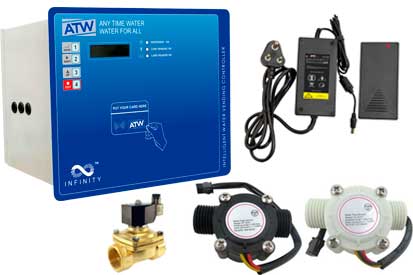 SMPS(Power supplies),batteries, Solenoid Valves, Flow sensors, card readers, ATW cards.
